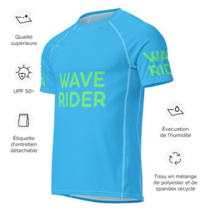 Ready to sweat or surf? This recycled rash guard wicks moisture, stretches comfortably, and looks amazing with its bold prints. Flatlock seams add a stylish edge, making it ideal for workouts, beach vibes, and bike rides.
