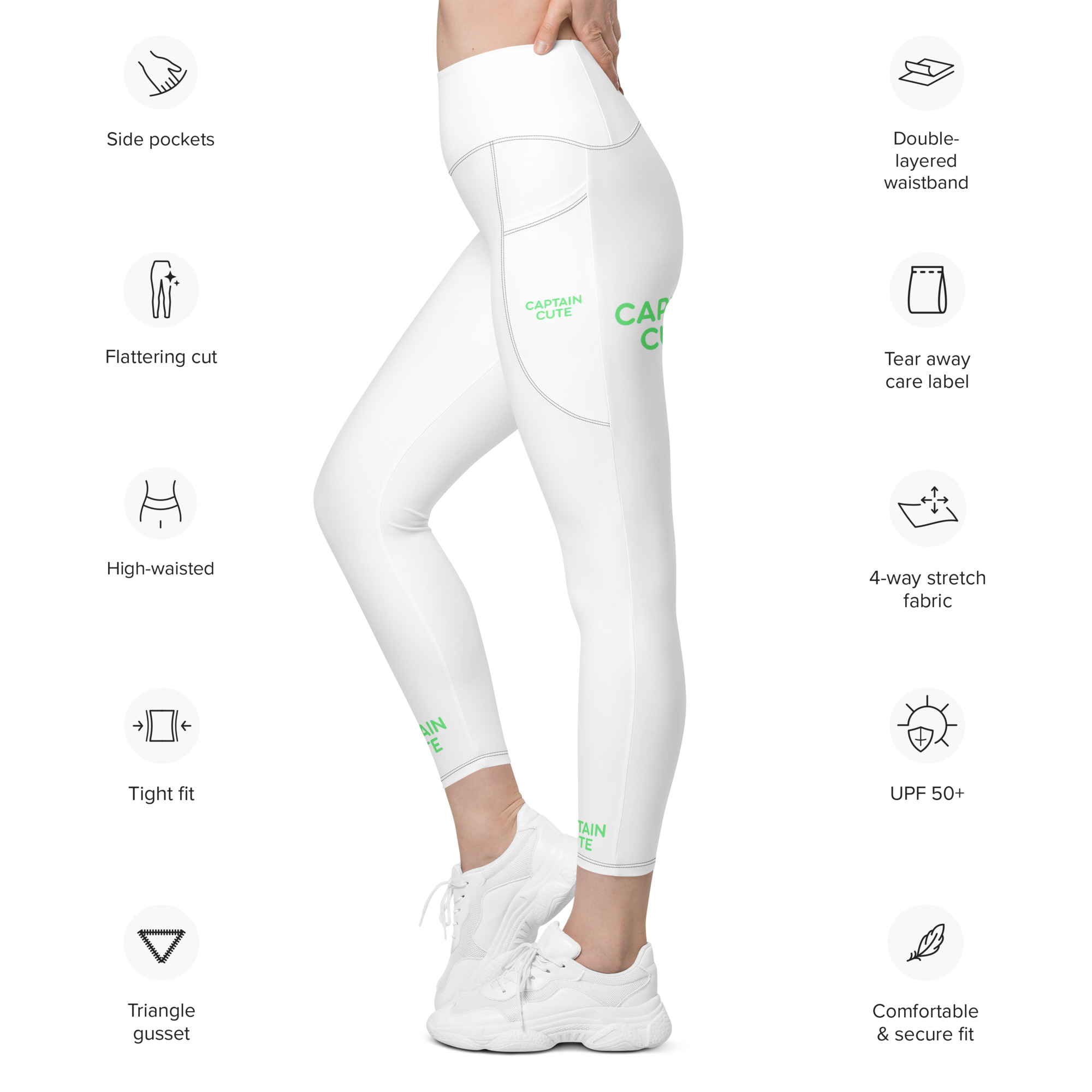 Meet your new favorite pair of pocket leggings. Featuring a classic, high-waisted cut, exceptional comfort, and two practical side pockets, these semi-compression leggings will support you during workouts and casual strolls around the city. Get yours now!